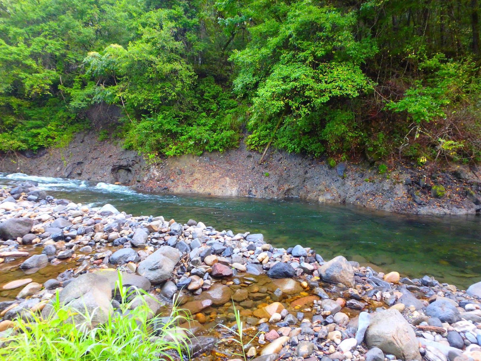 対岸は川面に覆いかぶさる枝木、粗忽者には要注意!